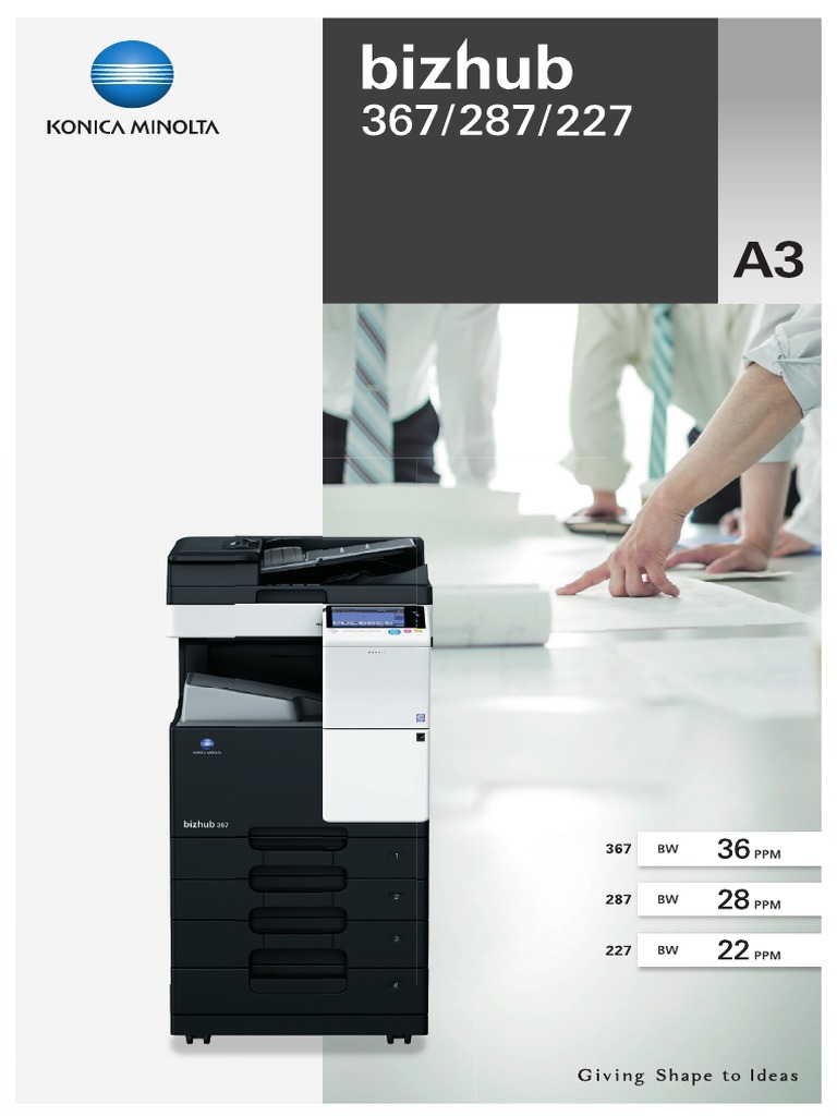 For assistance, please contact support. As of september 30, 2017, we discontinued dealing with copy protection utility on our new products. Optional dual scanning at up to 160 opm brings information into your workflow faster—and its enhanced touch screen simplicity never. Idéal pour les petits bureaux. We have 5 konica minolta bizhub 367 manuals available for free pdf download: